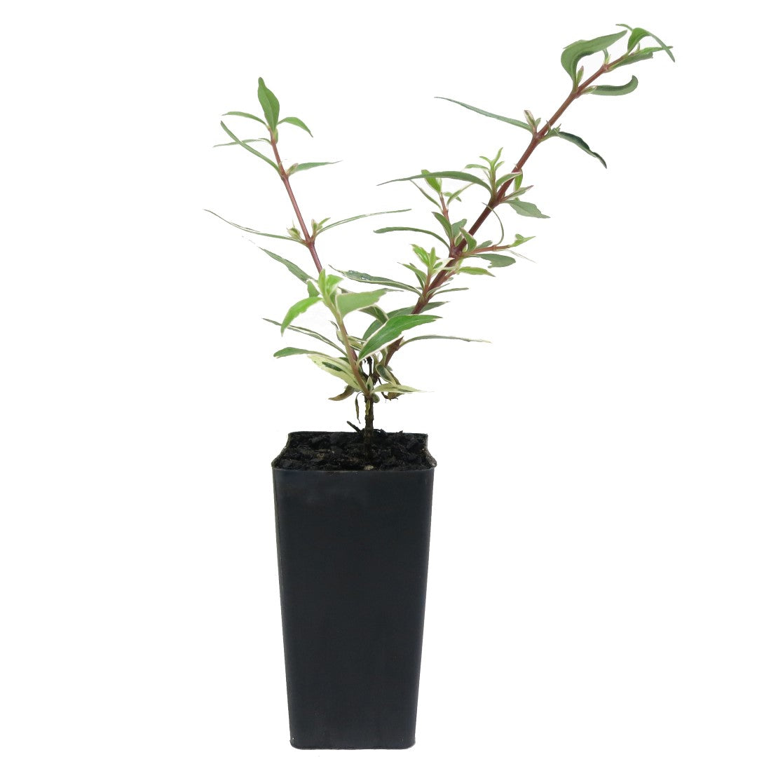 A wonderful evergreen shrub has green\white variegated leaves with masses of small, white, trumpet shaped flowers from late summer to autumn are produced abundantly.